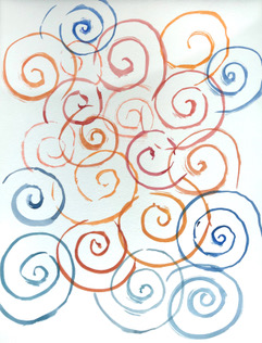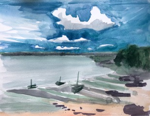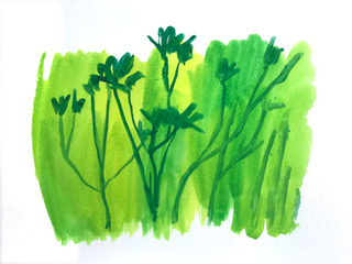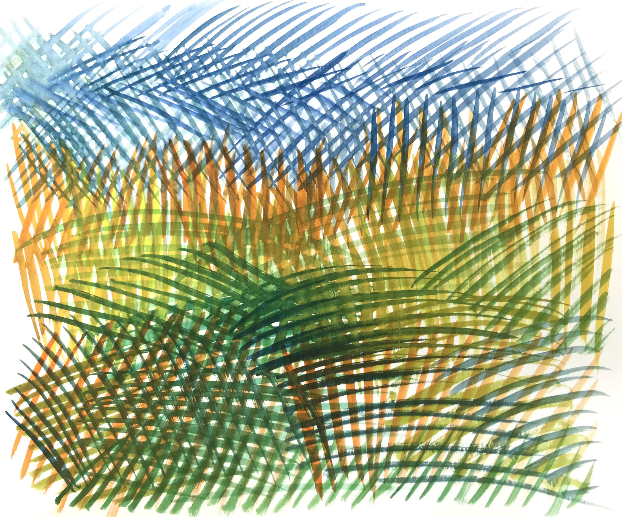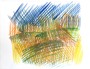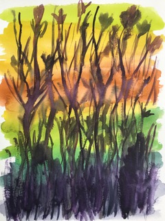 J’ai peint avec des encres de couleurs sur papier torchon 300g, format 70 x 50 cm et 30 x 20 cm.